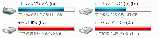 今のとこ別に壊れてないからいいけど、DドライブなんてこのPC買った時からずっと使ってて、つまり7年近く使ってることになるからいい加減壊れてもおかしくないんだよね・・・・・・。