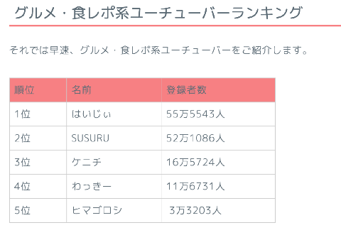 勝てる要素しかないって感じです。最大手がチャンネル登録者数50万で、しかもそれが2チャンネルしかないような界隈ですよ・・・・・・需要というか、グルメなんて重宝される人口の割にはすくねーな、っておもいません・・・・・・???