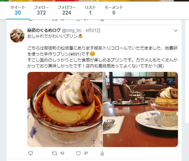 秘密のぐるめログというtwitterアカウントを運用しているんですね。