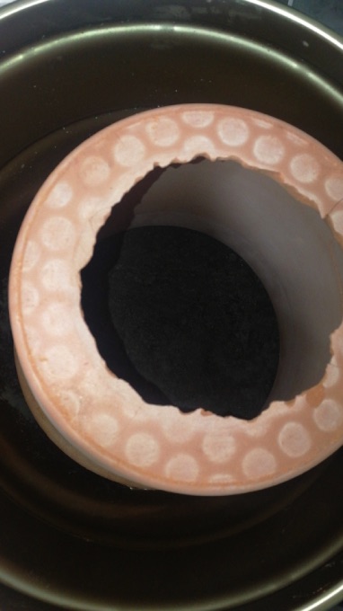 調理時は、ほんとは木炭を下から投入したかったんですが、見てわかるとおりろんぐさんがチキって空気孔兼掃除用穴を小さく切ってしまったので、ここから木炭を入れるのは厳しいので上から落としてなんとかするみたいな感じになりそうです。