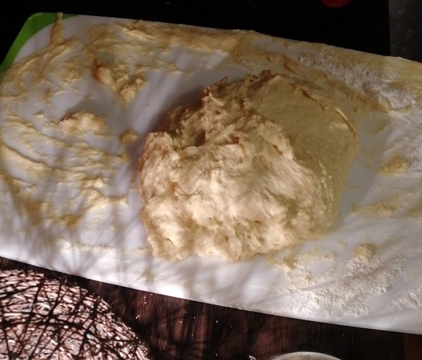 あと、もっとめちゃくちゃこねた方がよさそうなので大きなまな板を買ってその上でこねてみることにしました。