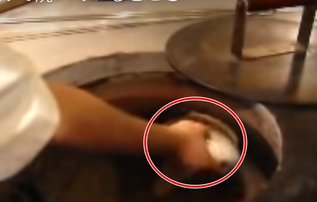 ナンを持つ前に油を手に塗るところはわかりました。で、生地はなるべく薄く、って感じですかね。下の方は遠心力でぺた、っと。