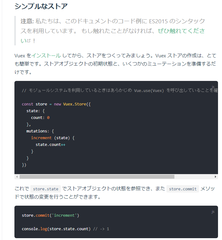 で、Vue.use(Vuex)というおまじないでVuexを使えるようにします。