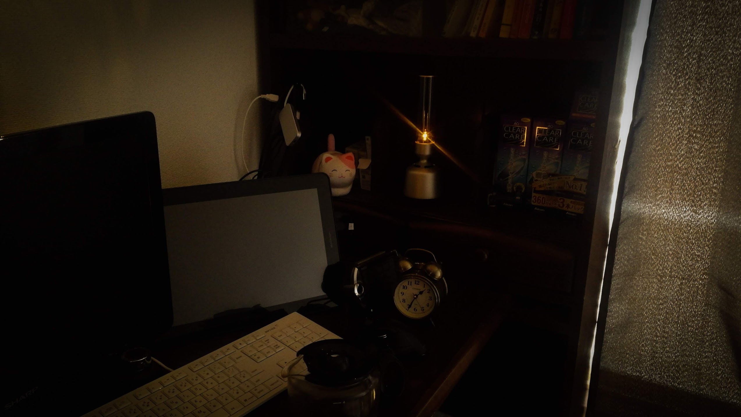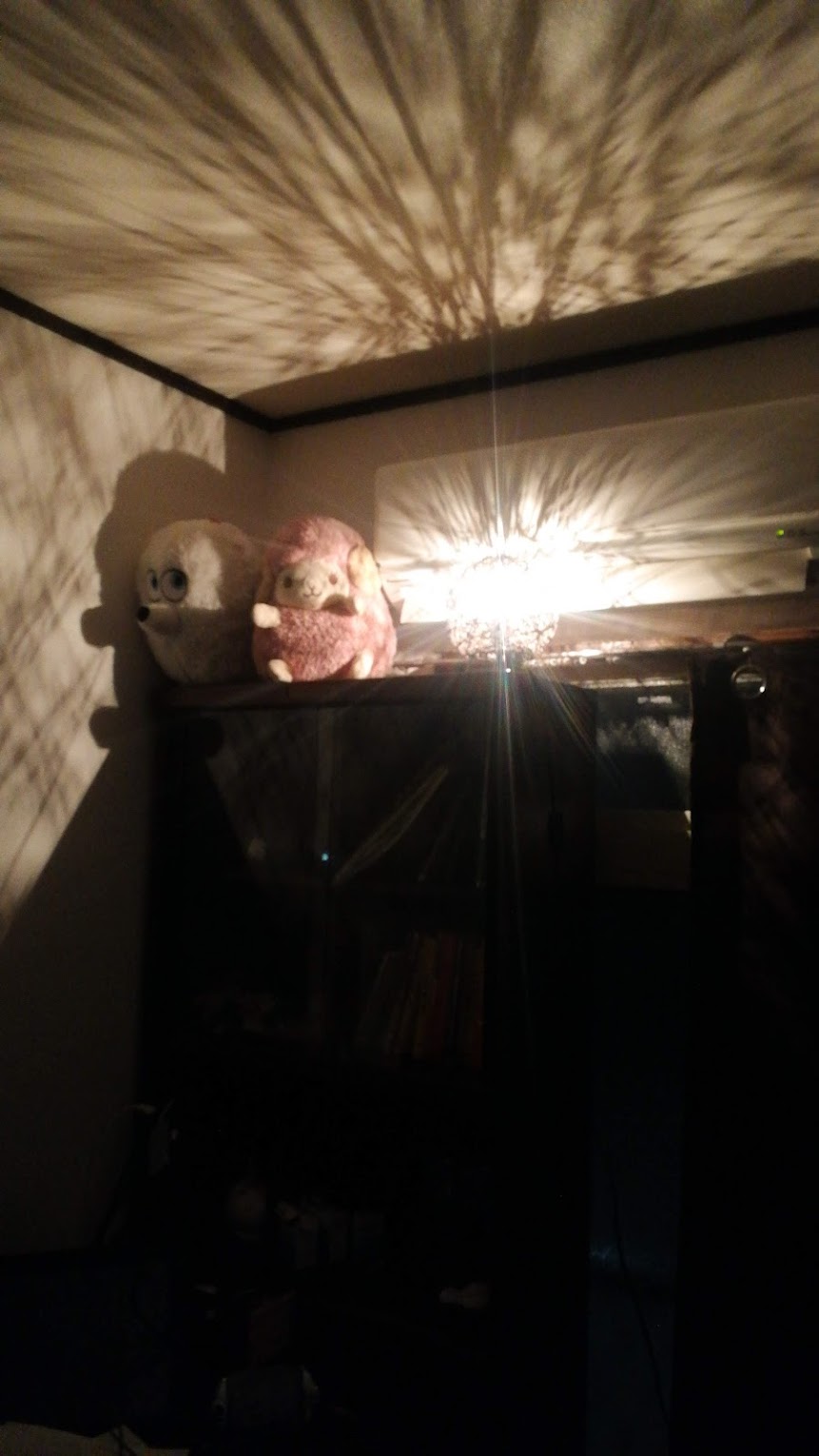 ただ、うちに調光器つきの電球がないのが厳しくてですね・・・・・・かといって買うかどうかって言われたら・・・・・・高くつくしなぁみたいなところがあるんですが、そうえいば間接照明として買ったライトで部屋を照らせば、擬似的な調光器となりうるのでは・・・・・・!?と思いついてやってみたわけです。