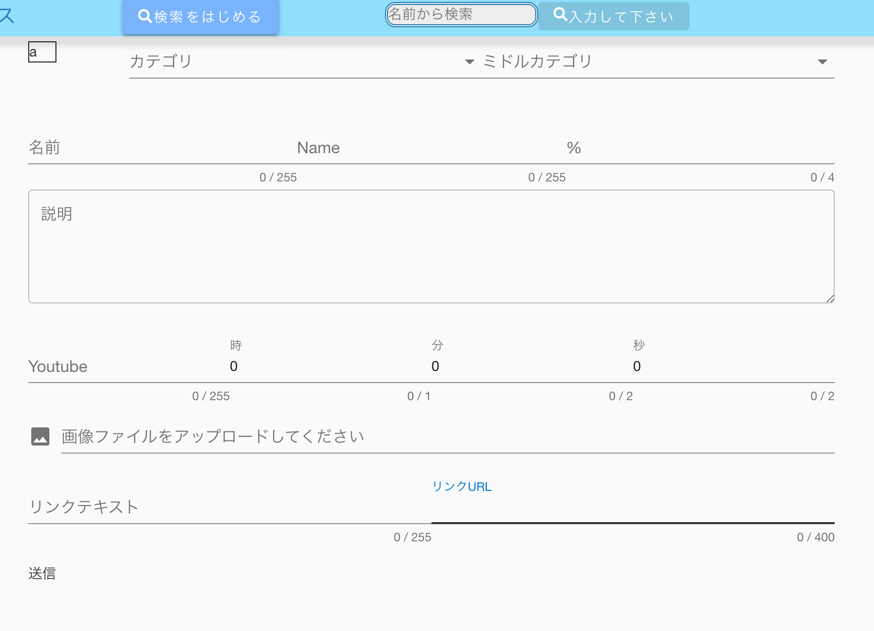 メジャーカテゴリ、ミドルカテゴリに関しては上の属カテゴリ部分が変化するぐらいで、あとは銘柄の時のみ度数が加わったり、メジャーカテゴリやミドルカテゴリの登録時は銘柄を最低ひとつは登録しなくてはいけないので、追加で銘柄の入力を強要される、ぐらいの違いしかなくて、使うべきフォームはほぼ同一なんですよね。