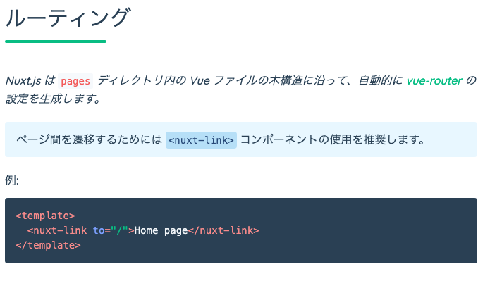 このへんの、ルーティングのお作法を頭に入れておけばあとはVue.jsと似たような感じで開発が進められそうですね。んじゃちょっと開発進めますかね。