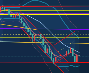 逆に利確もある程度さっさと決めます。具体的には引いた利確ラインで即時利確するか、そこで大概反発はするのですが勢いがなくなってきたり反発しそうならさっさと利確しちゃいます。