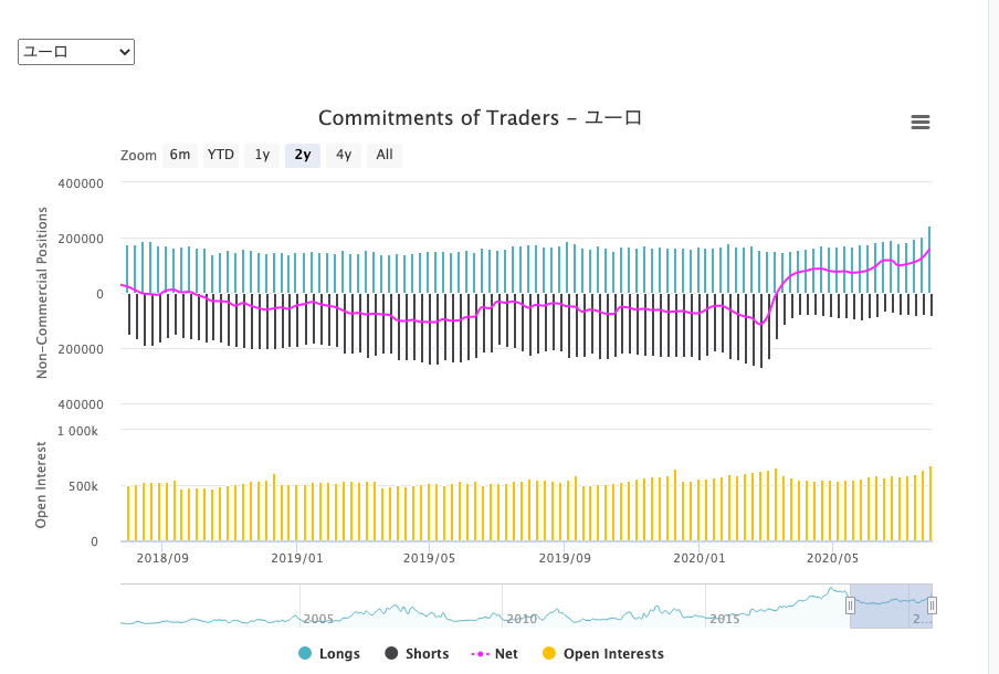 これをどう見るかってのは単純に、大口のロングとショートの保有比率がどっちかに大きく偏ってたら、利確が入る可能性を考慮したい、って感じです。