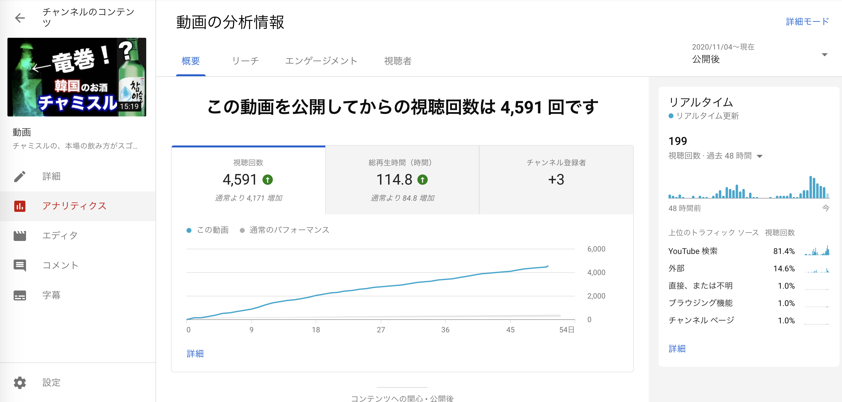 ちゃんとファクトとしても出てるんですよね。チャミスルの動画はめちゃめちゃ再生される割に、視聴者の獲得につながってない。