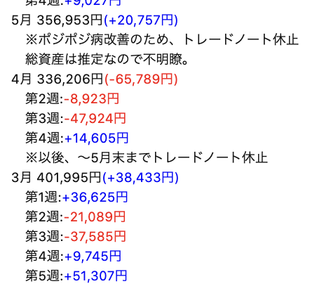 とりあえず6月はどう転んでもプラスで終わるのは確定ですし、自分のトレードを見返しても、まあちょいちょい気に入らないトレードはあったにしろ最近のトレードは冷静にできてて満足です。