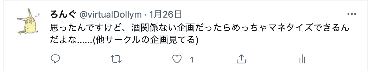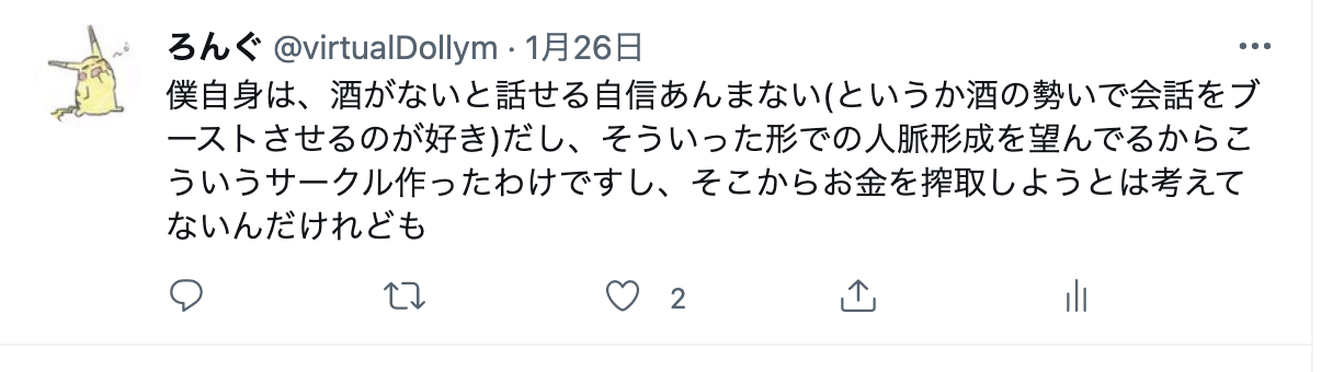 飲酒サークルがマネタイズできない理由は「僕の友達」という理由なのであって、ただ単に僕が主催として...つまりサークルではなく