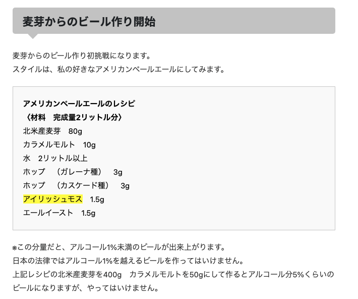 ここにアイリッシュモスとかいうよーわからんホップがあるんですけど、これは無視していいのかな。(笑)