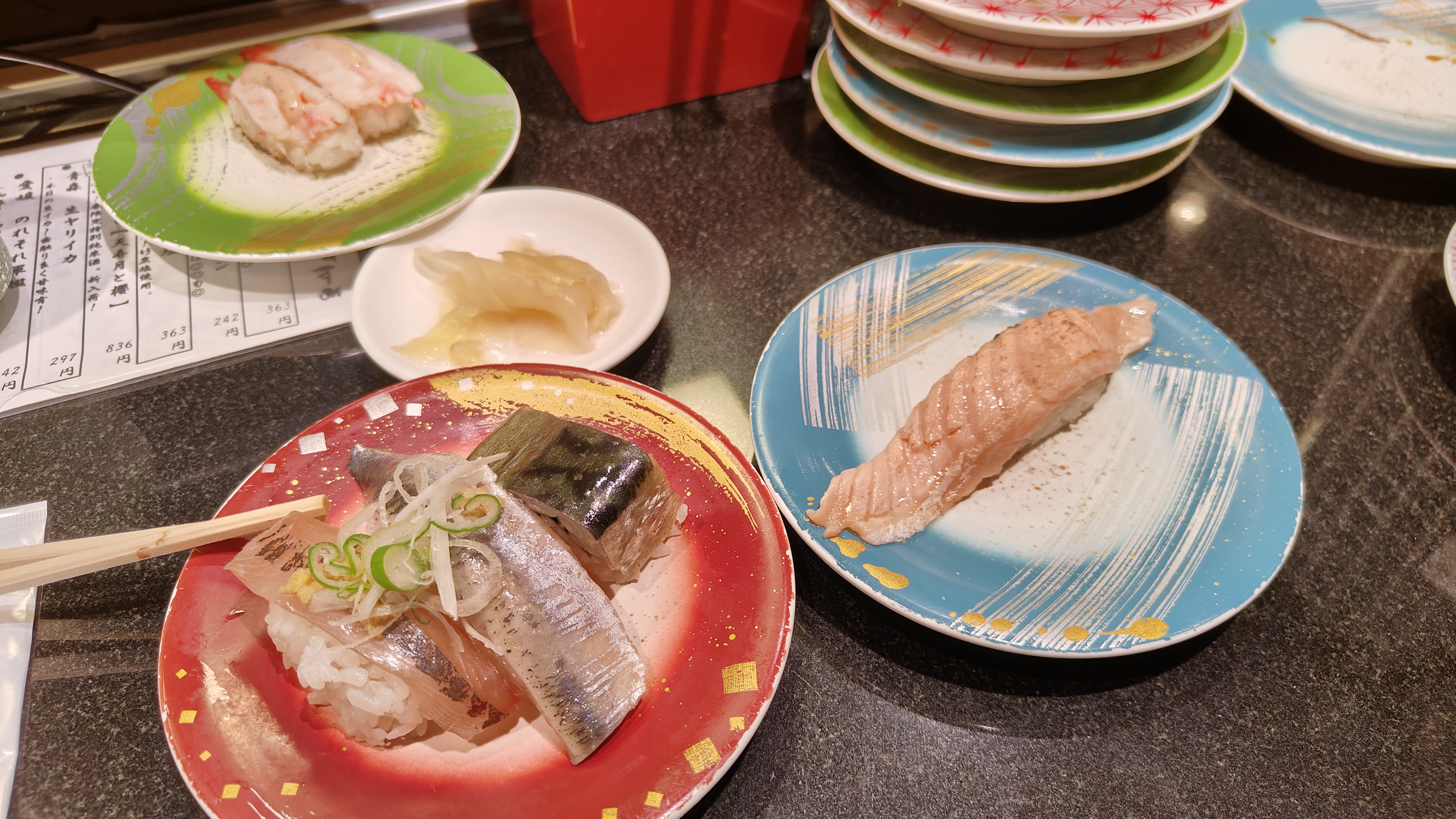 100円寿司とは違ってネタがちょっとでかくて満足感が高いのが特徴です。なんか、100円寿司って欲張って食べちゃうけどこういうとこはほどよく満腹感感じたら、ちょっと予算のこと考えて箸を止めることができるのもいいところですね()